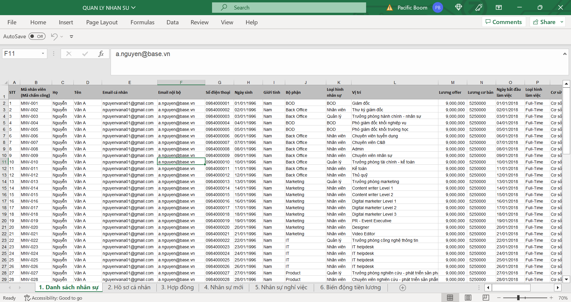 1. Kế hoạch Marketing/ 2. Quản lý công việc/ 3. Quản lý tiền lương/ 4. Quản lý nhân sự